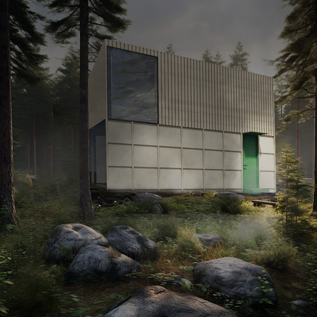 This forest cabin provides a sanctuary perfect for writing, reading, reflection and turning inwards. Its interior walls are lined with shelving for 4,500 books, with a datum enabling a calming double-height ceiling and expansive offset windows to frame views of the sky and forest. On the outside, the building is clad in the same pine that a local pulp mill uses to make paper for books. The monochromatic use of green accentuates the entrance and service elements of the space so that the kitchen, bathroom and bedroom are all verdant, giving a feeling of freshness. The carbon-neutral cottage is entirely off-the-grid and intentionally modest so that books and contemplative living can take centre stage within an affordable budget. The design is completely off-grid.
